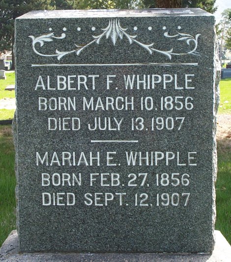Gravestone of Albert Fellows and Mariah Elizabeth (Carter) Whipple |